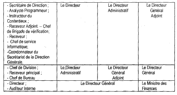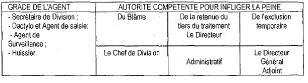 Province du Bas-Congo, Arrêté provincial n° 090/BIS/CAB.GOUV/BC/02112008 du 02 mai 2008 portant règlement d'administration relatif au personnel de carrière de la Régie Provinciale d'Encadrement et de Recouvrement des Recettes de la Province (REPERE), JO 2009, 1, col 30 Le Gouverneur de Province, Vu la Constitution de la République Démocratique du Congo, spécialement en ses articles 3, 195, 196, 198, 204 points 5, 10 et 16 et 221 ; Vu la Loi 081/003 du 17 juillet 1981 portant statut du personnel de carrière des services publics de l'Etat; Vu, telle que modifiée et complétée à ce jour, la Loi 83/003 du 23" février 1983 portant loi financière; Vu, tel que modifié et complété à ce jour, le Décret-loi n° 081 du 02 juillet 1998 portant organisation territoriale et administrative de la République Démocratique du Congo; Vu l'Ordonnance n° 07/006 du 24 février 2007 portant investiture des Gouverneur et Vice-gouverneur de la Province du Bas-Congo; Vu l'Arrêté Provincial n° 090/BIS/CAB.GOUV/BC/057/2007 du 27 avril 2007 portant désignation des Membres du Gouvernement Provincial; Attendu que conformément à l'article 198 alinéa 7 de la Constitution, les Ministres Provinciaux ont été investis par l'Assemblée Provinciale du Bas-Congo en date du 16 mai 2007; Vu l'Arrêté Provincial n° 090/BIS/CAB.GOUV/BC/075/2007 du 28 juillet 2007 portant organisation et fonctionnement du Gouvernement Provincial; Vu l'Arrêté Provincial n° 090/BIS/CAB.GOUV/BC/076/2007 du 28 juillet 2007 fixant les attributions des Ministères Provinciaux; Vu l'Arrêté Provincial n° 090/BIS/CAB.GOUV/BC/074/2007 du 19 juillet 2007 portant Création, Organisation et Fonctionnement de la Régie Provinciale d'Encadrement et de Recouvrement des Recettes de la Province (REPERE); Vu l'Arrêté n° 090/BIS/CAB.GOUV/BC/085/2007 du 10 septembre 2007 portant nomination d'un Directeur Général et d'un Directeur Général Adjoint de la REPERE; Le Conseil des Ministres entendu, ARRETE: TITRE 1 : DISPOSITIONS GENERALES Article 1er: Le personnel de la Régie Provinciale d'Encadrement et de Recouvrement des Recettes, « REPERE » en sigle, est régi par le présent Règlement d'Administration. Article 2: Le personnel de carrière de la REPERE est réparti en trois catégories d'emplois ci-après: 1. Constituent les emplois de commandement: - Directeur; - Auditeur Interne; - Chef de Division; - Receveur principal; - Chef de Bureau. 2. Constituent les emplois de collaboration: - Chef de Brigade de vérification; - Receveur; - Chef de service informatique; - Coordonnateur du Secrétariat de la Direction Générale; - Instructeur du Contentieux; - Receveur Adjoint. 3. Constituent les emplois d'exécution: - Secrétaire de Direction; - Analyste programmeur; - Secrétaire de Division; - Dactylo et Agent de saisie; - Agent de surveillance; - Huissier. Article 3: Les agents de la catégorie de commandement sont nommés et, le cas échéant, révoqués de leurs fonctions par le Gouverneur de Province sur proposition conjointe des Ministres Provinciaux ayant respectivement les Finances et la Fonction Publique dans leurs attributions. Les agents de la catégorie de collaboration et de la catégorie d'exécution sont nommés et, le cas échéant, révoqués de leurs fonctions par le Ministre ayant la Fonction Publique dans ses attributions sur proposition du Directeur Général de la REPERE après avis du Ministre ayant les Finances dans ses attributions. Article 4: L'organigramme de la REPERE est déterminé en annexe du présent Règlement d'Administration. Toutefois, en cas de nécessité, il peut être modifié sur décision du Conseil des Ministres. TITRE II : RECRUTEMENT Article 5 : Nul ne peut être recruté comme personnel de la REPERE s'il ne remplit les conditions suivantes: 1. être de nationalité congolaise; 2. jouir de la plénitude de ses droits civiques; 3. produire une attestation de bonne vie et moeurs et un extrait de casier judiciaire; 4. avoir atteint l'âge de 18 ans accomplis; 5. être en bonne santé et posséder des aptitudes physiques indispensables pour les fonctions à exercer; 6. être titulaire au moins d'un diplôme d'Etat ou équivalent pour les emplois d'exécution, sauf pour les agents auxiliaires et les huissiers, et au moins d'un diplôme de graduat ou équivalent pour les emplois de collaboration; 7. avoir subi avec succès les épreuves d'un concours de recrutement. Article 6: Les candidats sont soumis à une épreuve de recrutement destinée à apprécier leurs aptitudes intellectuelles et à déterminer leurs connaissances de base et/ou la formation spécialisée jugée nécessaire pour l'exercice des fonctions pour lesquelles le recrutement s'effectue. Les épreuves de recrutement s'effectuent exclusivement aux emplois de collaboration et d'exécution. Article 7: Le recrutement s'effectue sur concours organisé par la REPERE sous le contrôle conjoint des Ministres ayant les Finances et la Fonction Publique dans leurs attributions. Article 8: Le concours de recrutement doit faire l'objet d'une publicité dans la presse. Cette publicité doit porter à la connaissance des candidats tous les renseignements utiles concernant les conditions d'admission, les matières sur lesquelles porteront les épreuves, les niveaux de formation requis, la date et le lieu des épreuves ainsi que la date limite et le lieu de dépôt des candidatures. Ne peuvent participer aux épreuves que les personnes répondant aux conditions exigées et ayant fait, par écrit, acte de candidature pour leur recrutement. Article 9: Le programme des épreuves comporte un test psycho-technique, un test professionnel, des connaissances générales et une interview suivant chaque grade et le niveau de formation requis. TITRE III : LA CARRIERE CHAPITRE 1: PERIODE PROBATOIRE Article 10: Pour être admis à titre définitif, l'agent doit accomplir, sous l'autorité du chef hiérarchique auprès duquel il est affecté, une p