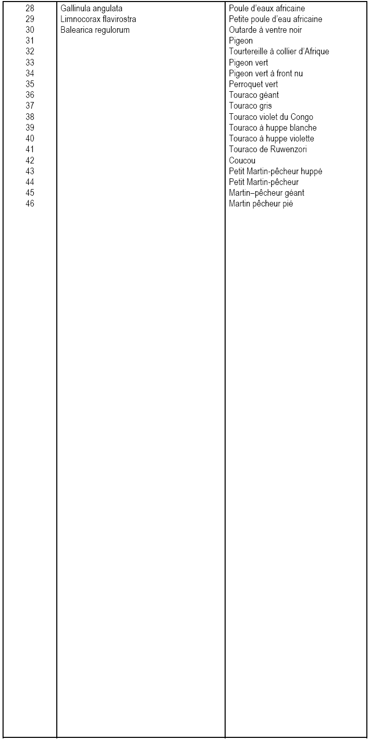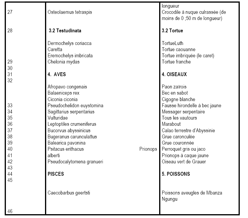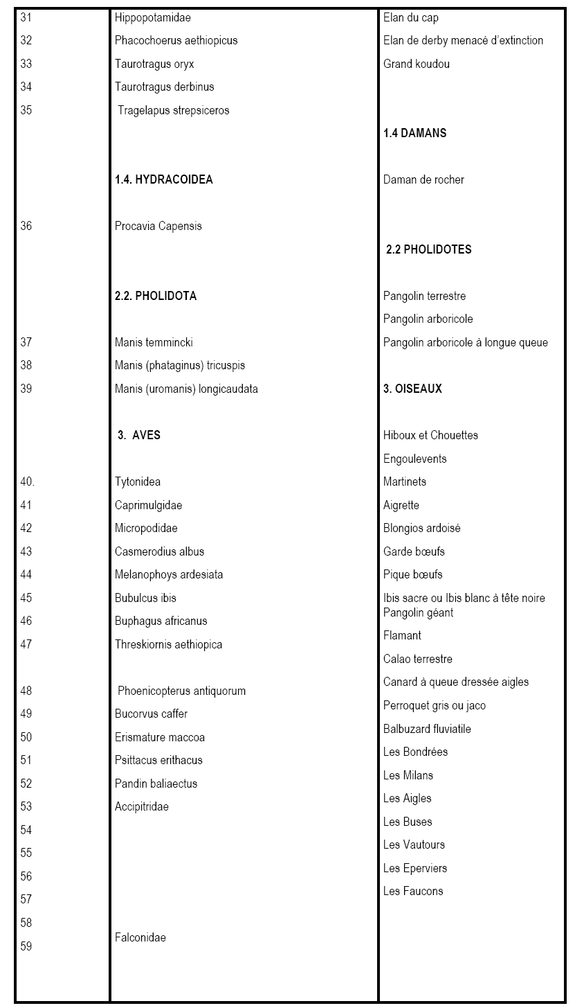 Tableau II. Animaux Partiellement  Protégés
